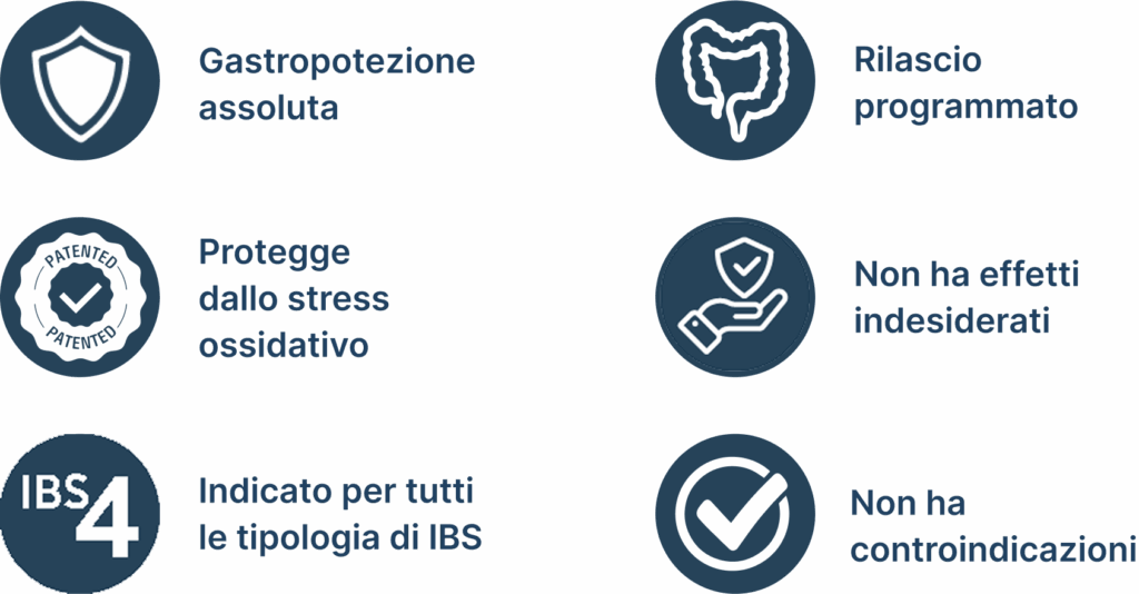 La combinazione della tecnologia del rivestimento gastro-resistente e della matrice a rilascio graduale programmato, consente al mentolo di raggiungere il colon.